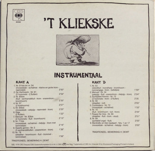 't Kliekske - 't Kliekske Instrumentaal (LP, Album) Format: LP, AlbumYear: 1978