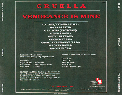 Cruella - Vengeance Is Mine (CD, Album) Format: CD, AlbumYear: 1989