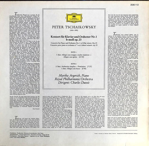 Alle gegevens bekijkenTschaikowsky* – Martha Argerich · Charles Dutoit, Royal Philharmonic Orchestra -Klavierkonzert Nr. 1 B-Moll = Piano Concerto No. 1 In B Flat Minor