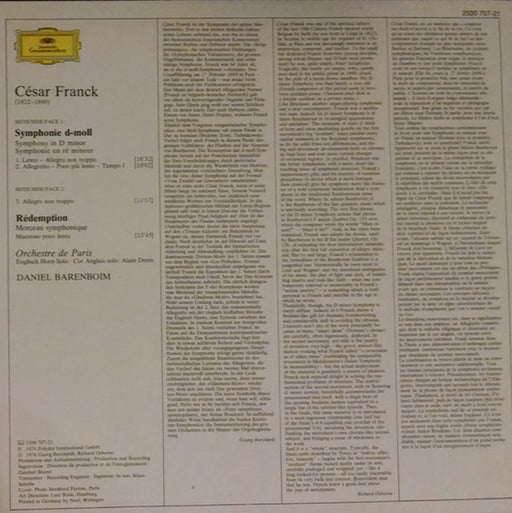 César Franck, Orchestre De Paris . Daniel Barenboim - Symphonie D-Moll = In D Minor (LP, Album) Format: LP, AlbumYear: 1976