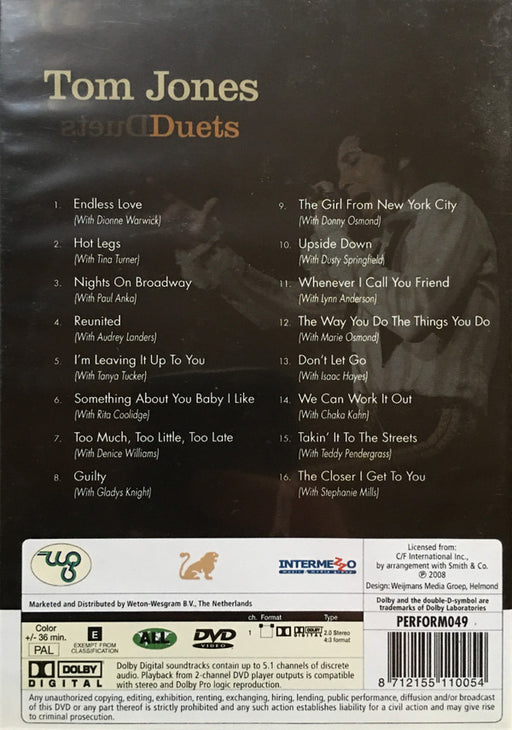 Tom Jones - Duets (DVD-V, PAL) Format: DVD-V, PALYear: 2008