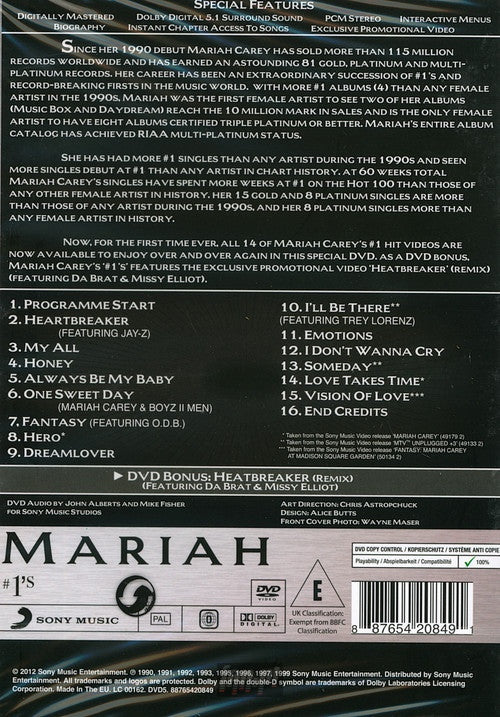 Mariah* - #1's (DVD-V, Comp, RE, PAL, Reg) Format: DVD-V, Comp, RE, PAL, RegYear: 2012