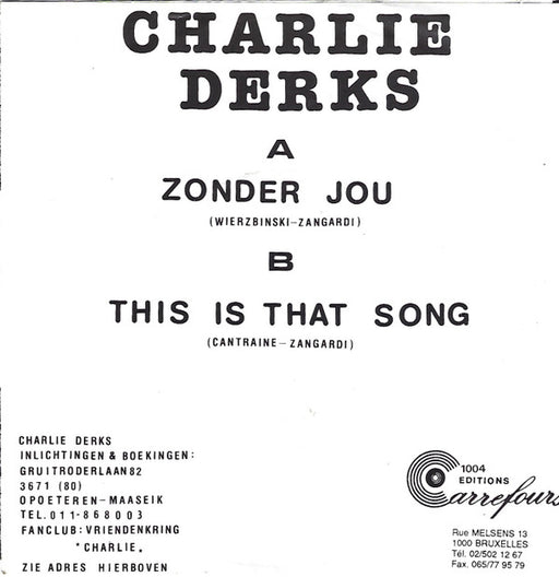 Charlie Derks - Zonder Jou (7", Single) Format: 7", SingleYear: 0