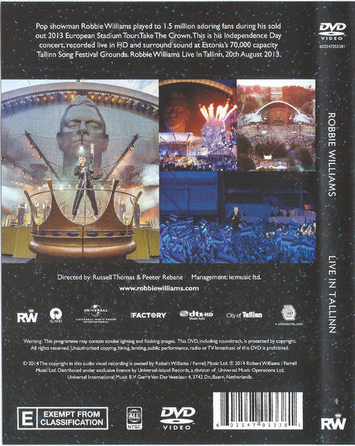 Robbie Williams - Live In Tallinn (DVD-V, NTSC) Format: DVD-V, NTSCYear: 2014