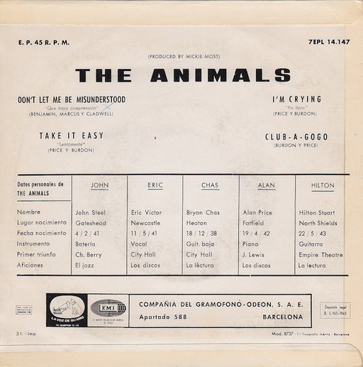 The Animals - The Animals Is Here (7", EP) Format: 7", EPYear: 1965