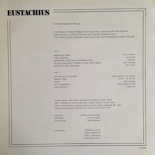 Norbert Detaeye - Songs (LP, Album) Format: LP, AlbumYear: 1983