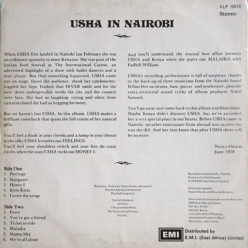Usha Uthup - Usha In Nairobi (LP, Album) Format: LP, AlbumYear: 1978