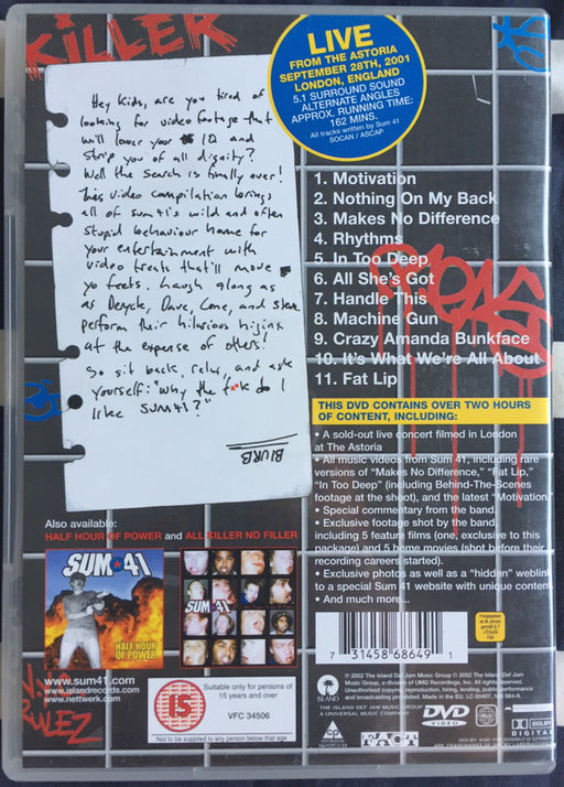Sum 41 - Introduction To Destruction (DVD, PAL) Format: DVD, PALYear: 2001