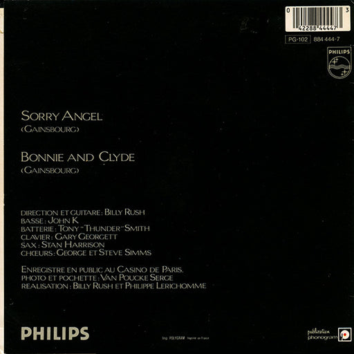 Serge Gainsbourg - Live - Sorry Angel / Bonnie And Clyde (7", Single) Format: 7", SingleYear: 1986