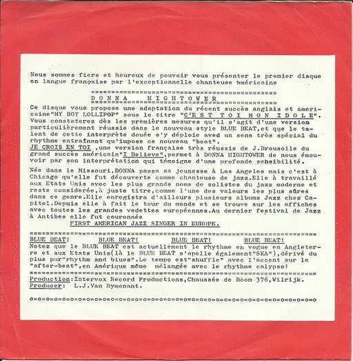 Donna Hightower - C'est Toi Mon Idole (7", Single) Format: 7", SingleYear: 0
