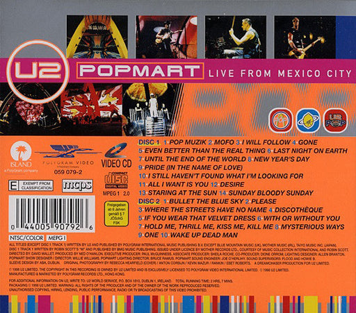 U2 - Popmart Live From Mexico City (2xVCD, NTSC, MPE) Format: 2xVCD, NTSC, MPEYear: 1998
